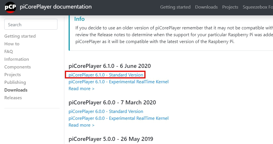 安裝版本:piCorePlayer 6.1.0 - Standard Version