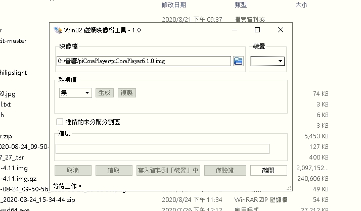 用Win32DiskImager工具燒到SD卡上,PiCorePlayer比較特別,第一次開機需要插網路線,透過區域網路取得DHCP,連進去才能設定Wifi,才能無線使用。