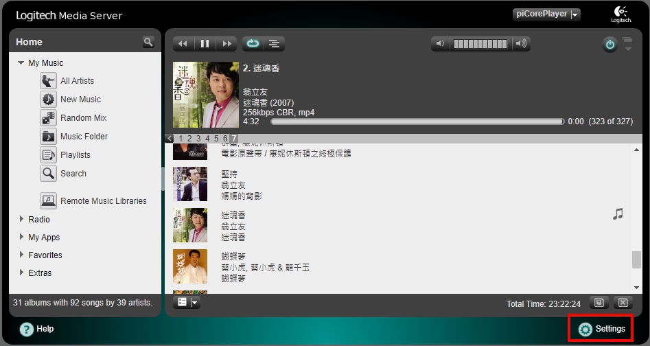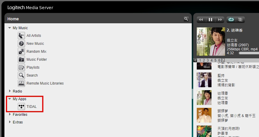 從My App裡面就可以去設定你的Tidal帳號,登陸後它就會把Tidal整合到LMS(Logitech Media Server)裡面了。安裝好之後整個PiCorePlayer要重開機(建議斷電重開機),LMS(Logitech Media Server)畫面才會出現!