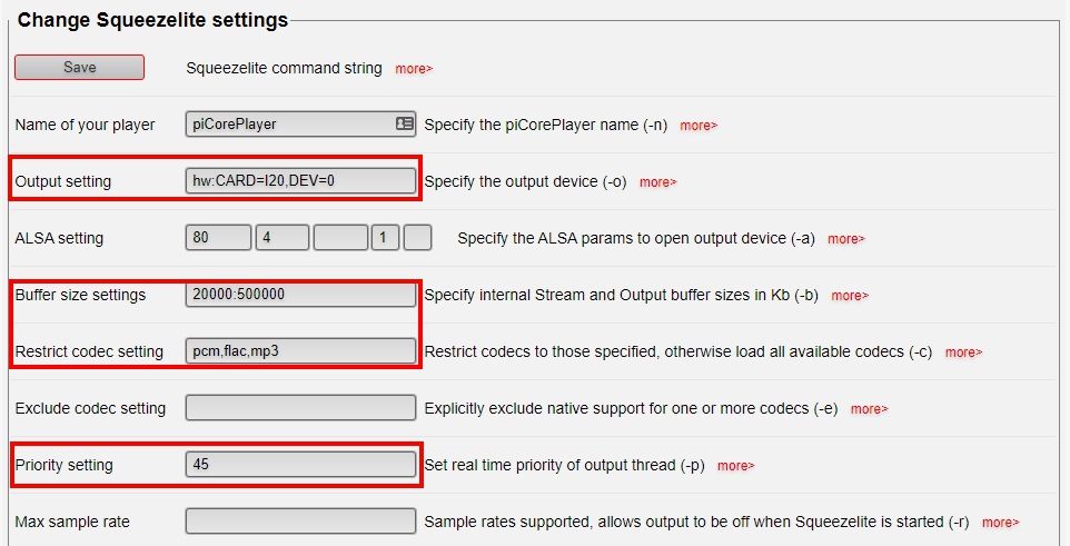 接下來就是設定音頻的輸出,我的擴大機使用USB Audio輸入,我這邊卡好久,一直不知道[Output setting]要填什麼,在Volumio裡面是自動的,這邊要自己填有點困擾,我的Volumio顯示IAG USB Audio 2.0,最後在國外論壇找到答案,填[hw:CARD=I20,DEV=0]就可以用了,聲音總算是出來了,整整搞了兩天,其他都算容易!