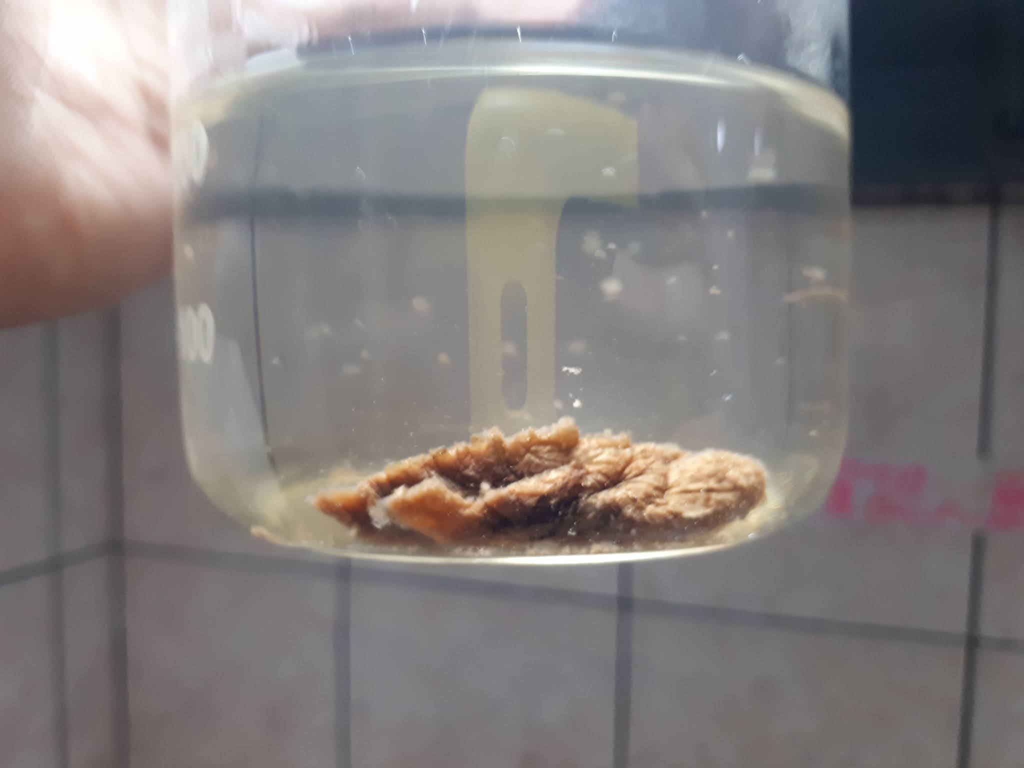 5. 質地軟爛,越新鮮的菜脯質地就越堅韌,相對老的菜脯,用指甲就可以輕易剝下一小塊。(註:部分客家醃法,乾扁表面帶鹽巴,但還是可以用指甲輕易剝下),如上一張圖,如果只是泡茶,表皮有稍微崩解,也是正常的。
